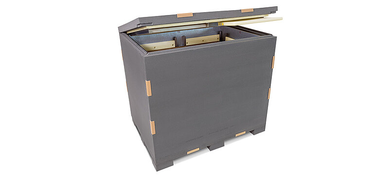 A unique benefit in terms of logistics is that this XXL pallet shipper can be stored in conventional cold-storage facilities without any loss of cooling power. This enables maximum flexibility, as it can be prepared well in advance of the shipping date. Even extended airport stopovers due to delays are no problem if the goods are stored correctly in the airport’s cold-storage unit.